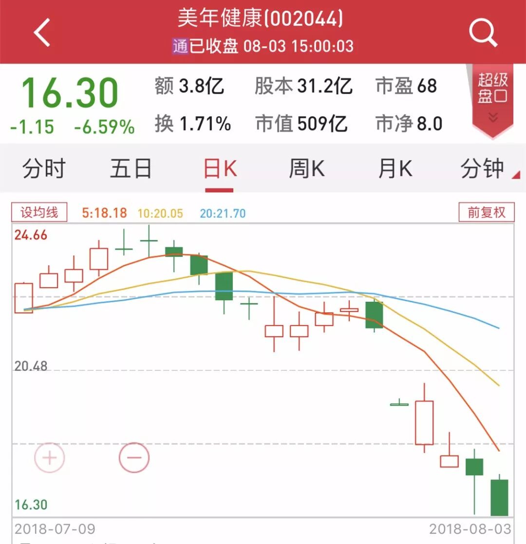 7月30日,受“假醫(yī)生”負(fù)面事件影響,美年健康股價(jià)出現(xiàn)跌停,7月31日,小幅上漲0.31%,此后又持續(xù)大跌。