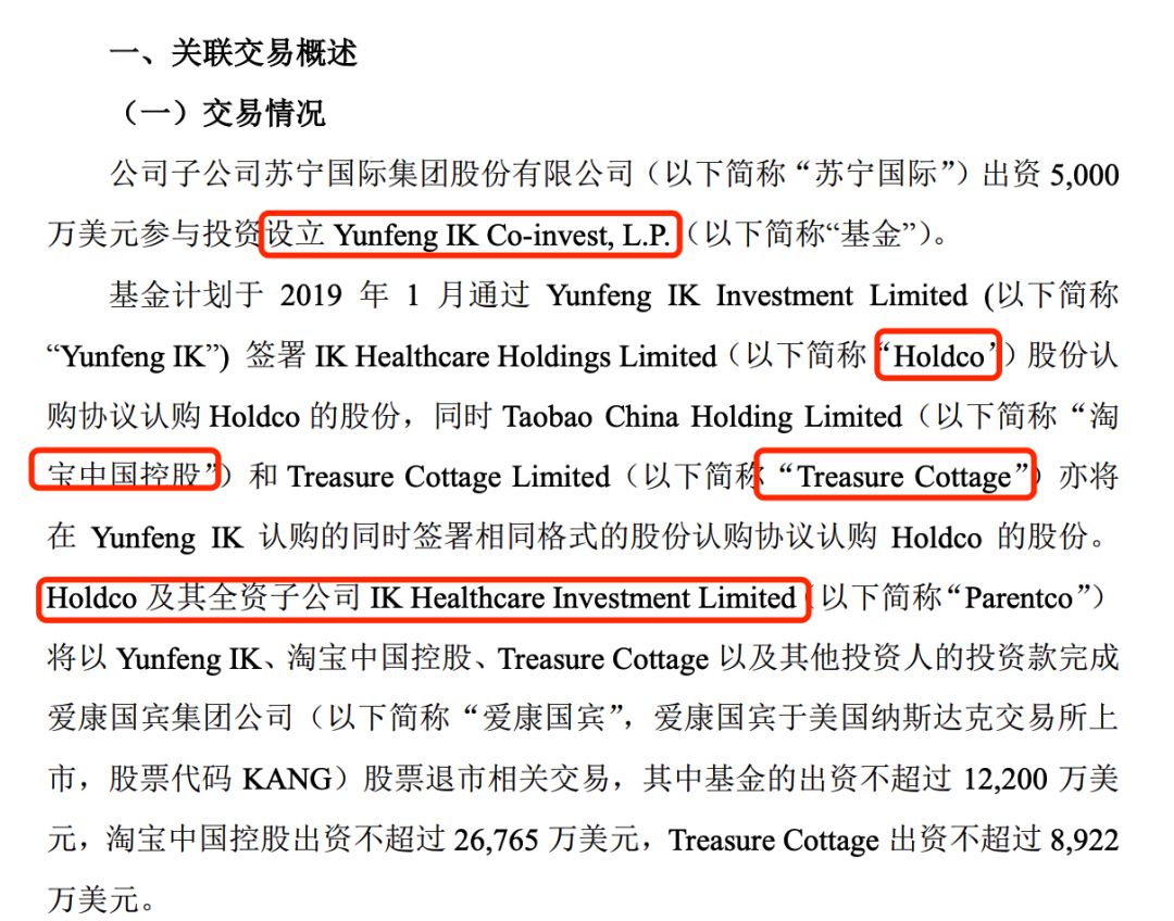 1月14日晚間,淘寶和蘇寧等分別公告宣布,將通過(guò)多方出資,**終收購(gòu)愛(ài)康國(guó)賓**股份。愛(ài)康國(guó)賓私有化之后,阿里巴巴旗下淘寶中國(guó)控股和Treasure Cottage將間接持有愛(ài)康國(guó)賓約23.8%的股權(quán),蘇寧與云峰合作的基金將間接持有愛(ài)康國(guó)賓約8.2%的股權(quán),蘇寧國(guó)際間接持有愛(ài)康國(guó)賓約3.4%的股權(quán)。